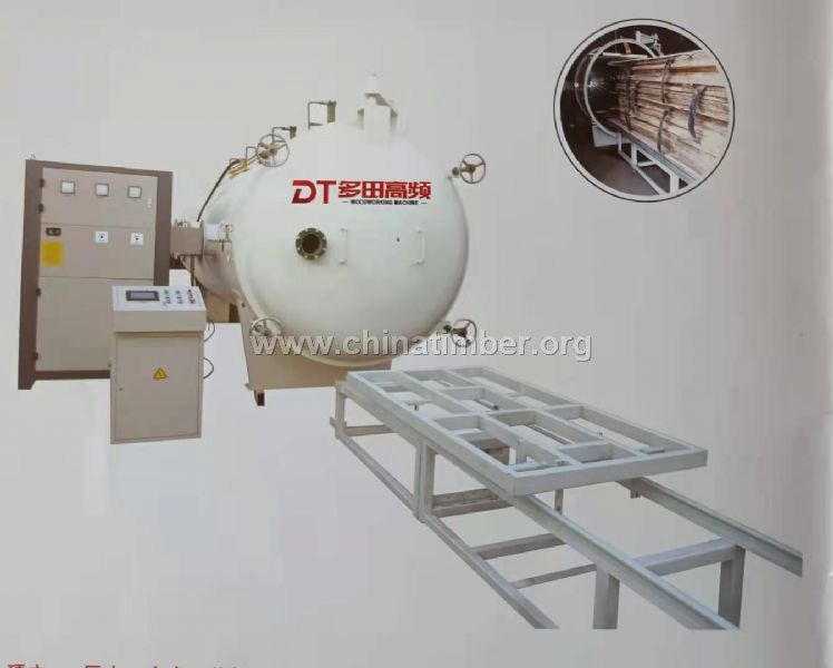 多田高頻真空木材干燥機: 一、采用高頻加熱。 二、木材內外同時加熱,加熱均勻,質量好。 三、采用真空吸水降低了木材干燥過程的溫度使木材低溫汽化,不易開裂,提高木材的脫水速度。